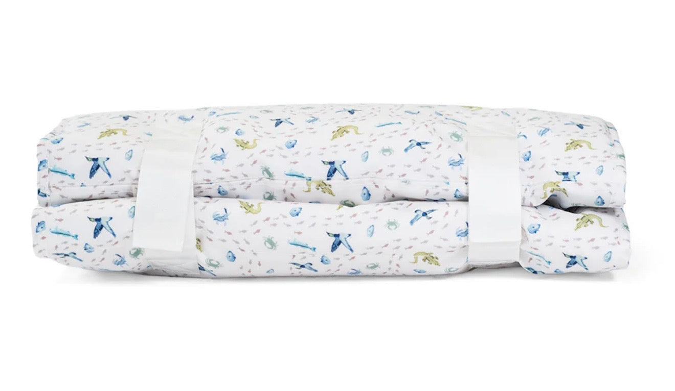 Introducing Our Rest Up! NAP MAT - the perfect solution for a comfortable and clean nap time! Made with our signature coated print outer that provides a wipeable and antimicrobial exterior. Our FLIP & FOLD design is easy to open and close for all ages. The full inside zip around cover ensures dirt, germs, and little creatures to stay on the outside and not on the plush fleece inside where your little ones lay. Each mat has a comfortable wide web shoulder strap for easy transport to and from school and for travel!